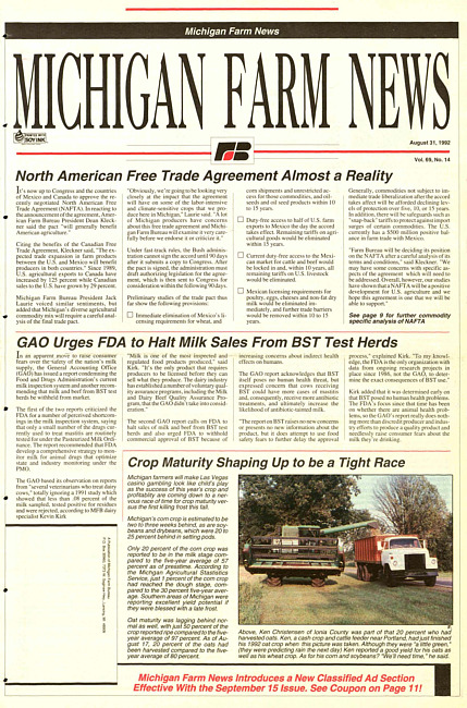 Michigan farm news : publication of Michigan Farm Bureau. (1992 August 31)