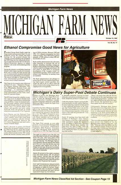 Michigan farm news : publication of Michigan Farm Bureau. (1992 October 15)
