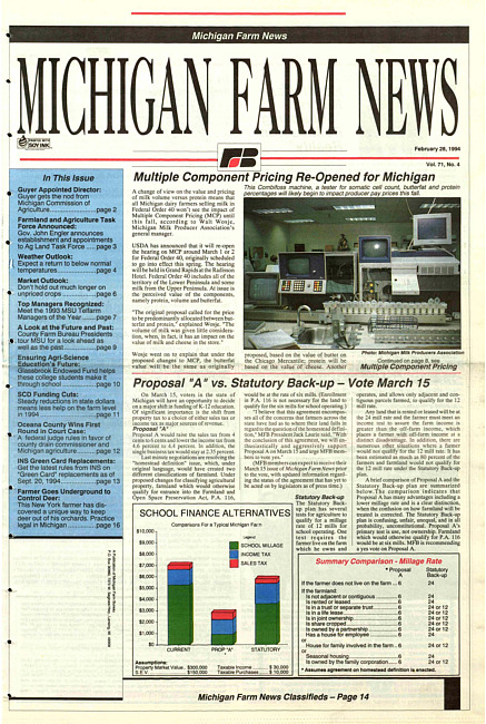 Michigan farm news : publication of Michigan Farm Bureau. (1994 February 28)