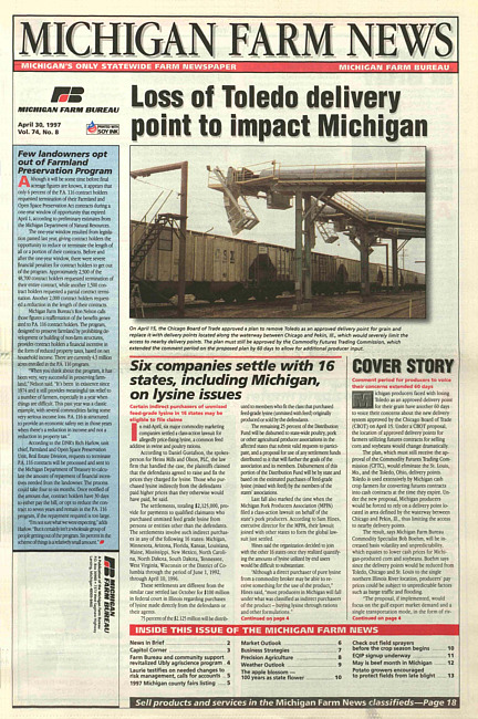 Michigan farm news : publication of Michigan Farm Bureau. (1997 April 30)