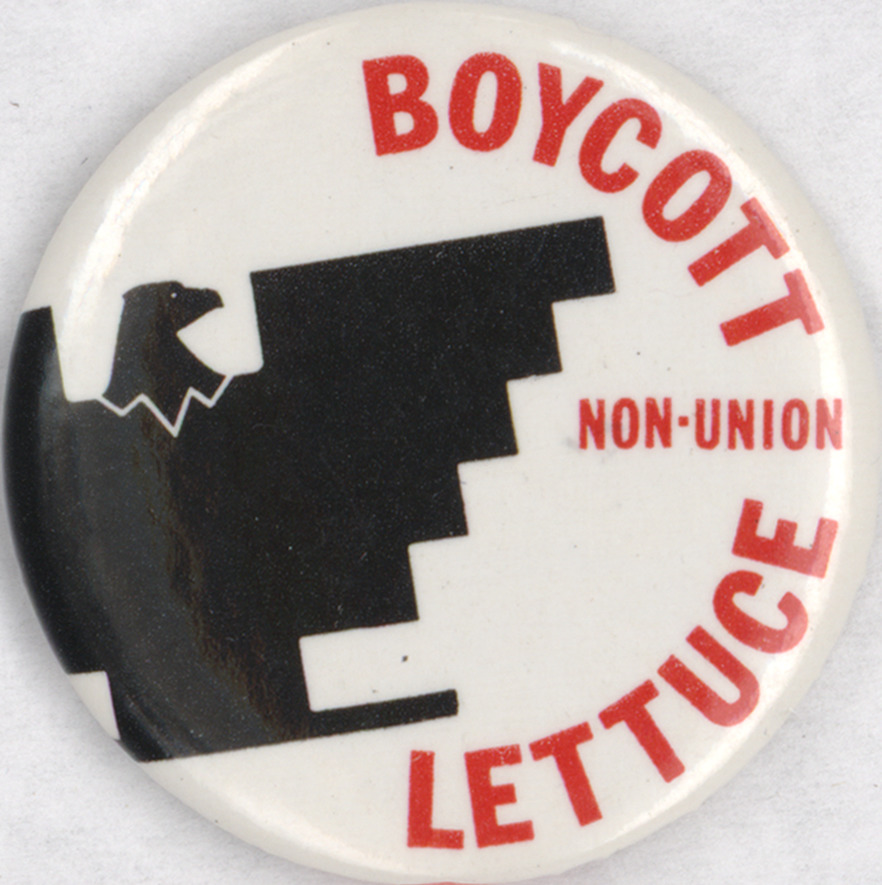 Boycott non-union lettuce; union bug; white background with red text and black union eagle