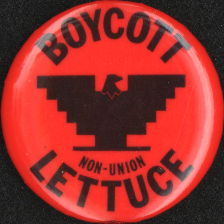 Boycott non-union lettuce; union bug. Red background with black text union eagle