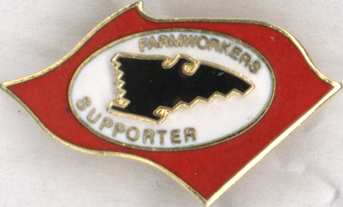 Farmworkers supporter; black, red, white enamel lapel pin, gold edges