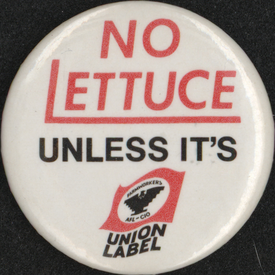 No lettuce unless it's union label; union bug; white background with red/black text and union flag