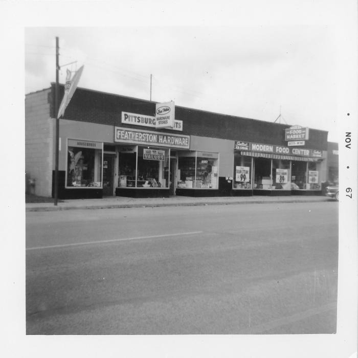 Village of Ortonville Hardware and Food Market South Street. 3 1/2x3 1/2 black and white photographic print.