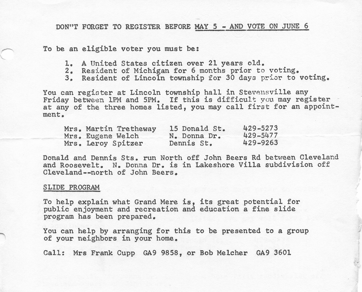 Undated newsletter published by the Grand Mere Association in early 1967