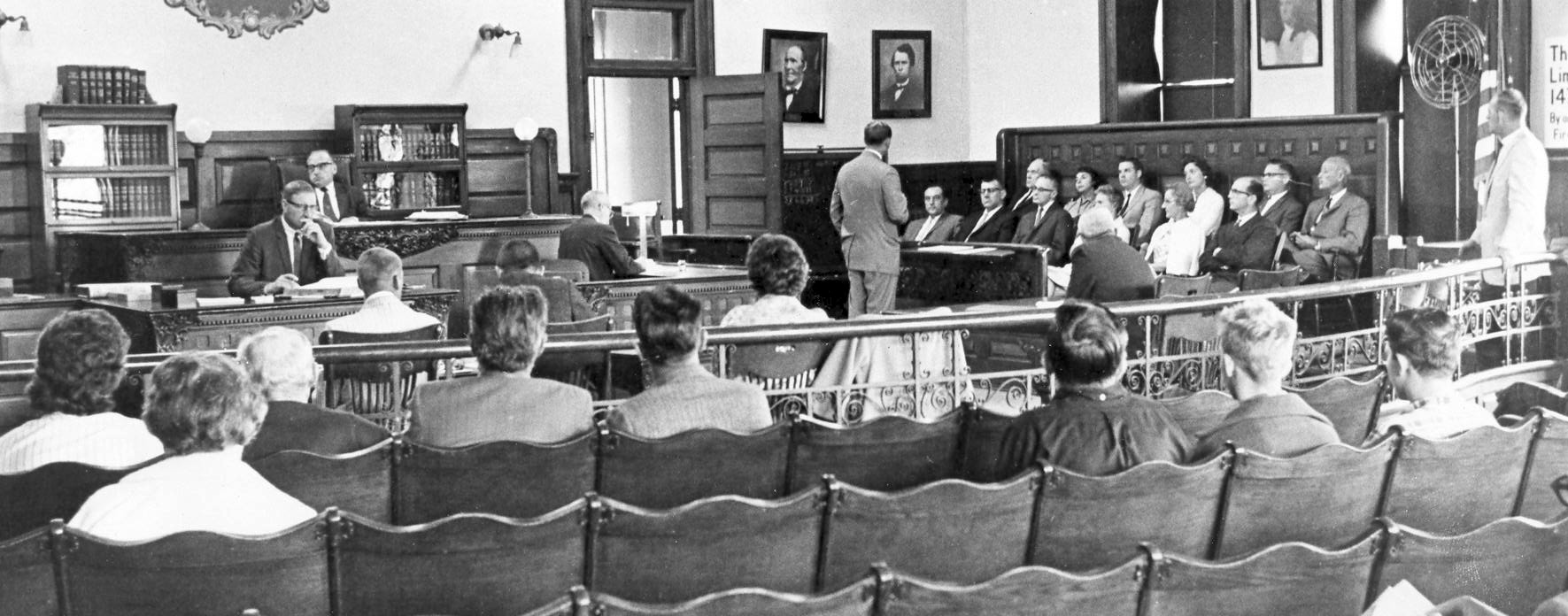 Photo of a 1964 court session in the Ottawa County Courthouse in Ottawa County, Michigan.