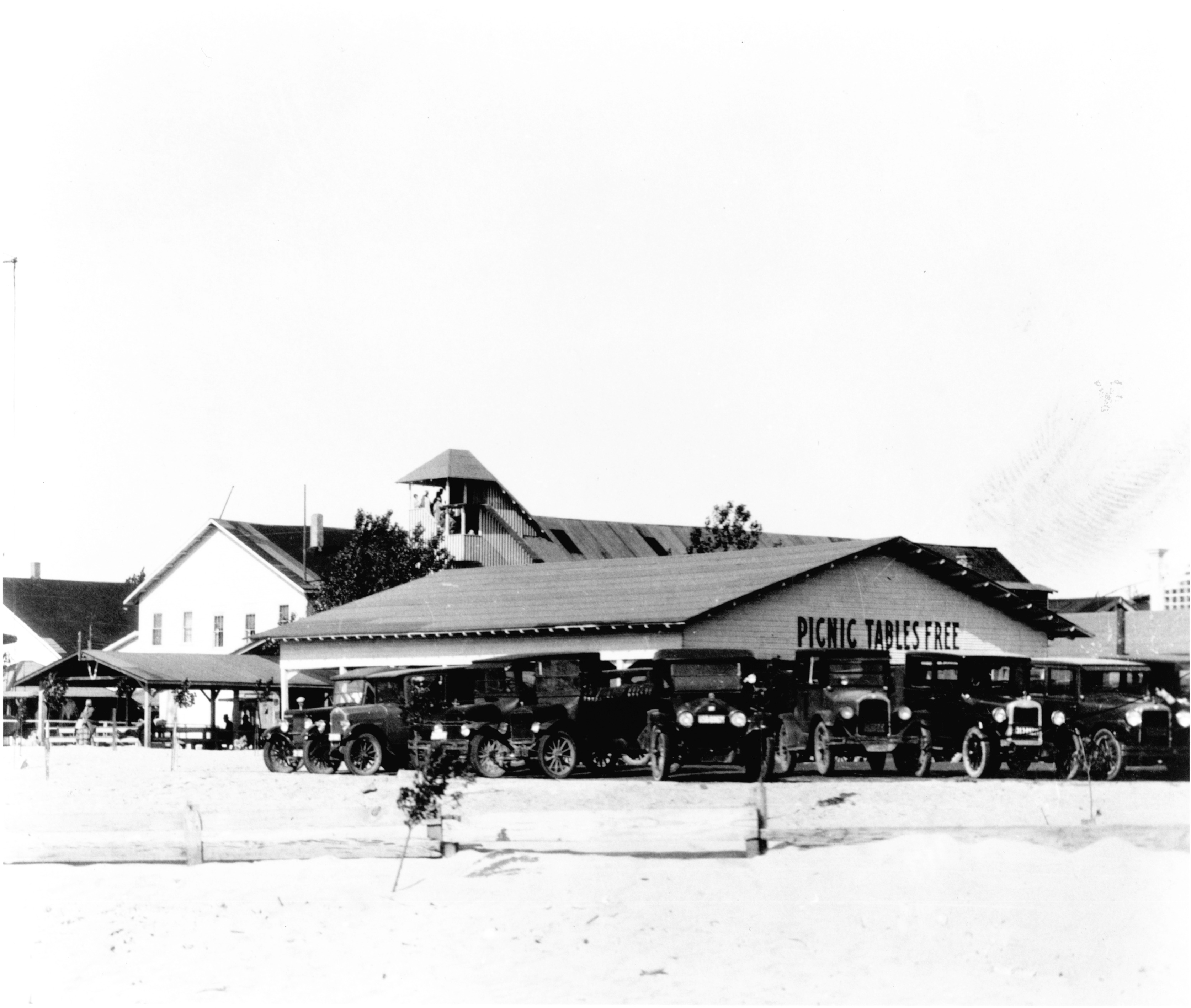 A view of the Pavilion at Silver Beach. Notice the cars surrounding the building -- times are changing.