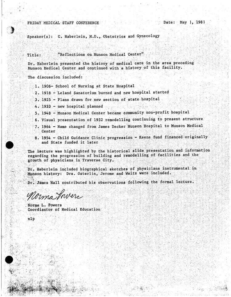 Lecture outline. Lecture Hightlights of Building Growth and Develpment of Munson Medical Center.