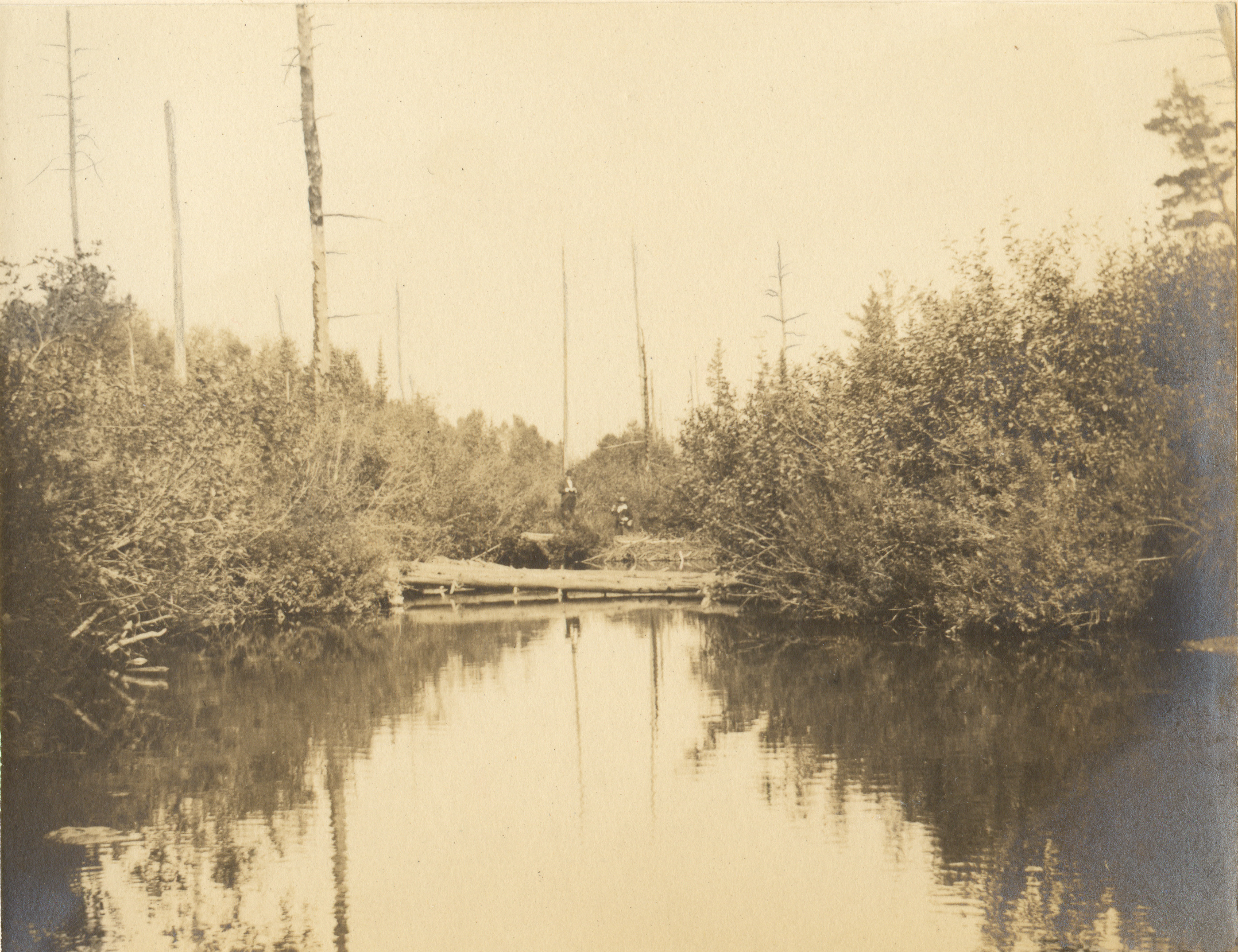 Photograph of river in the Upper Peninsula of Michigan with two people in the background.