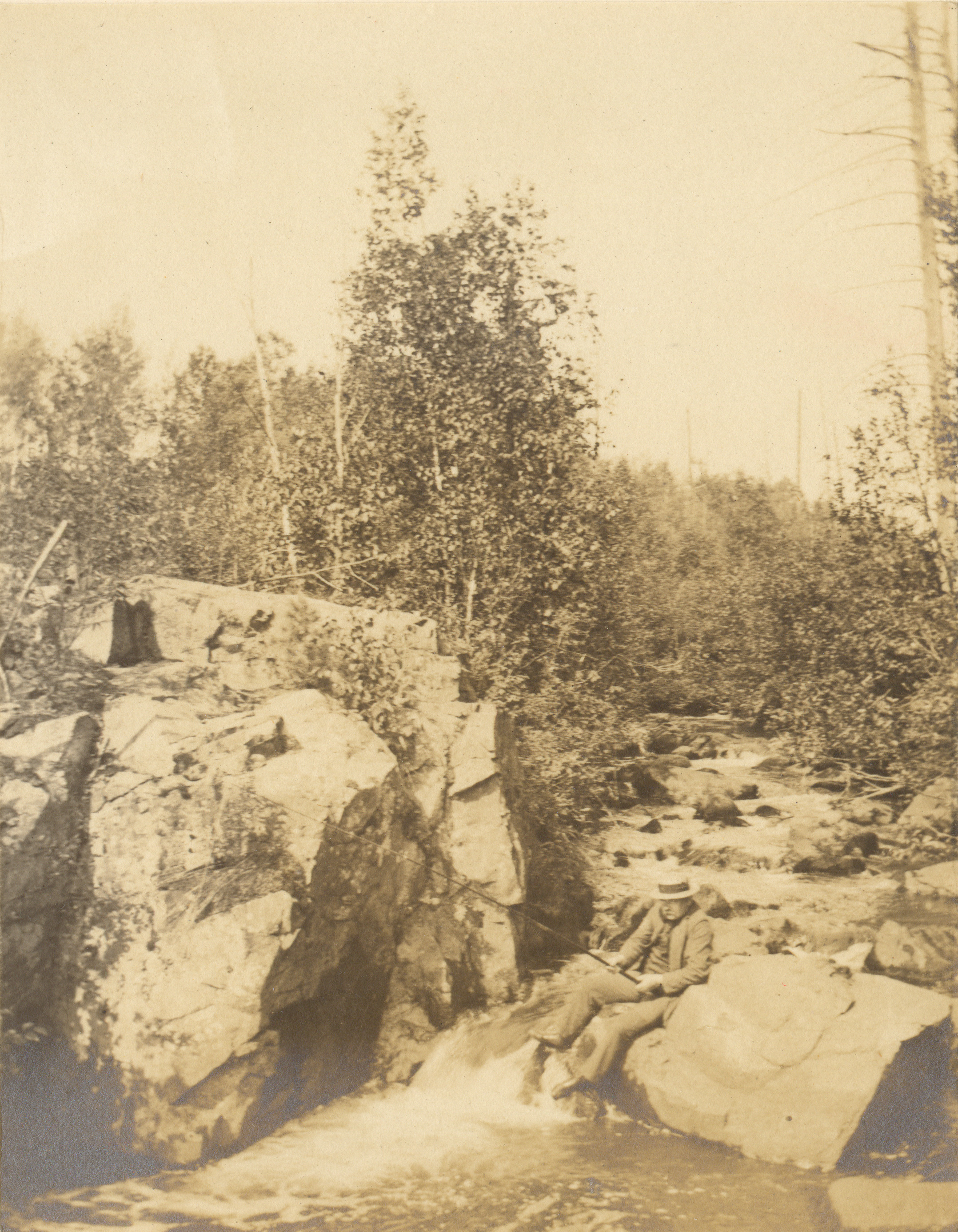 Photograph of a person fishing in a river in the Upper Peninsula of Michigan.