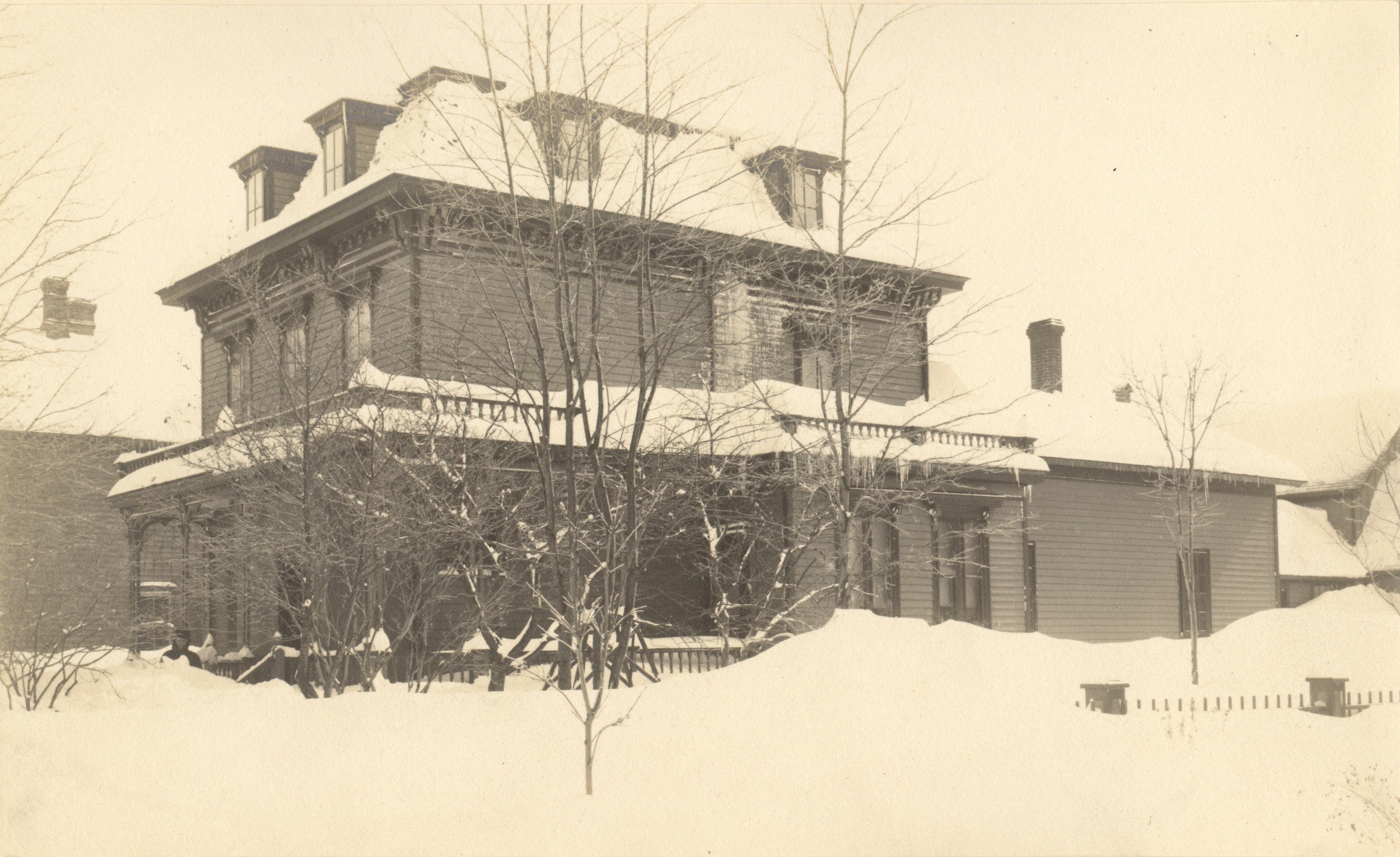 Photograph of the Hall's home during the winter, located in Negaunee, Michigan.