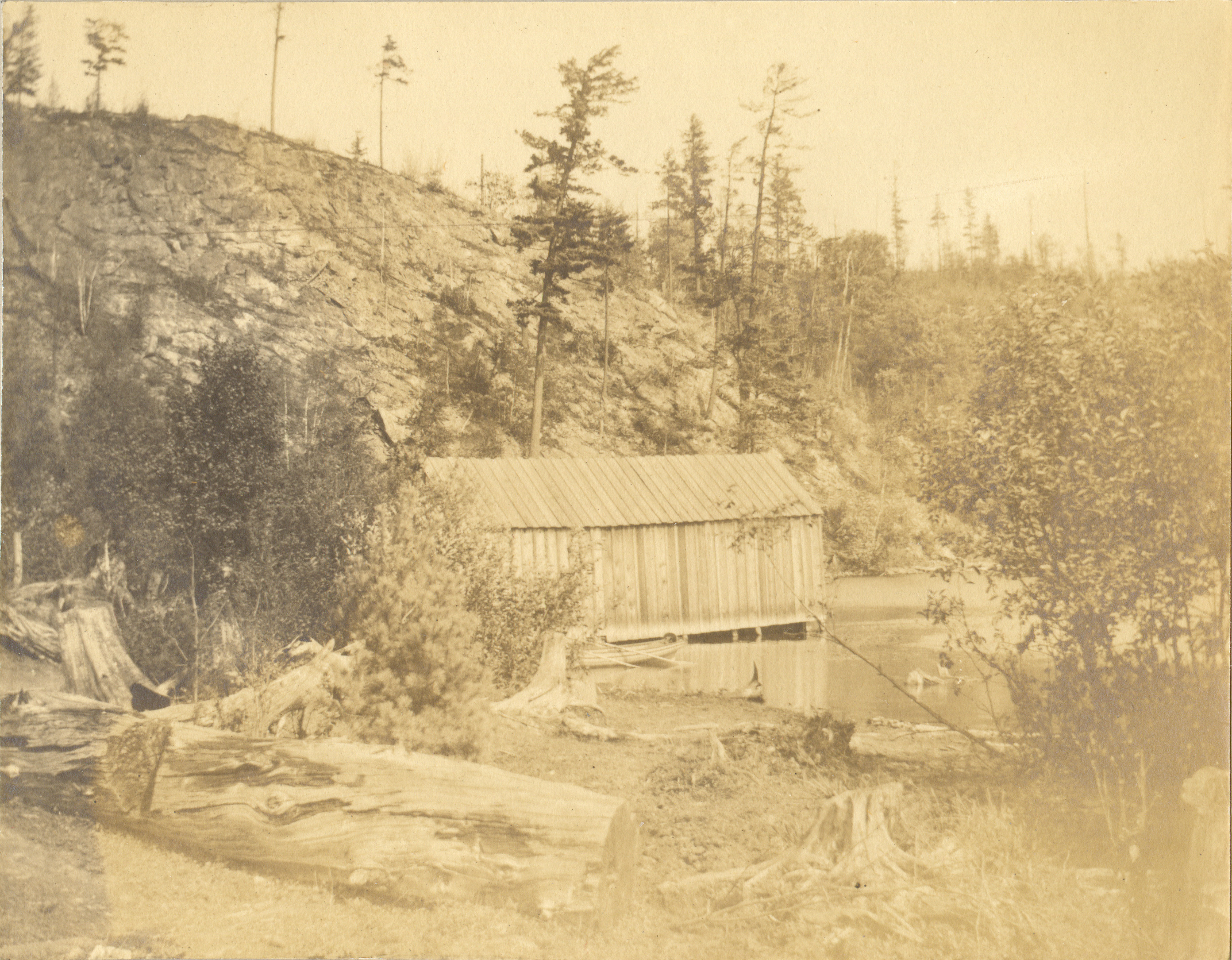 Photograph of a wooden building on the shore of a lake in the Upper Peninsula of Michigan.