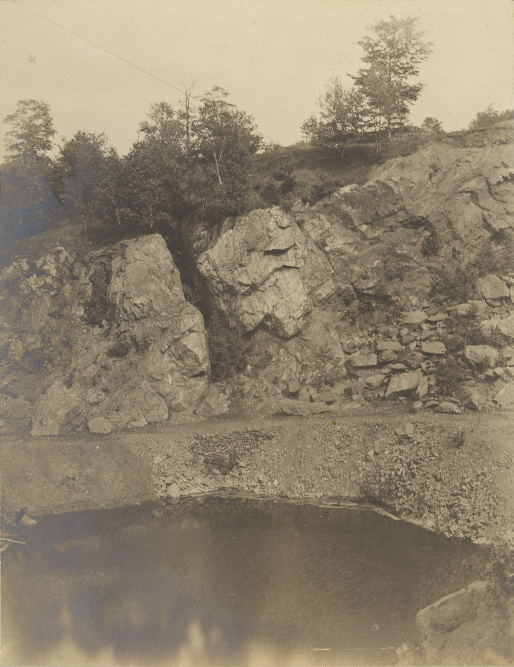 Photograph of a pond and rocks at a mining site in the Upper Peninsula of Michigan.