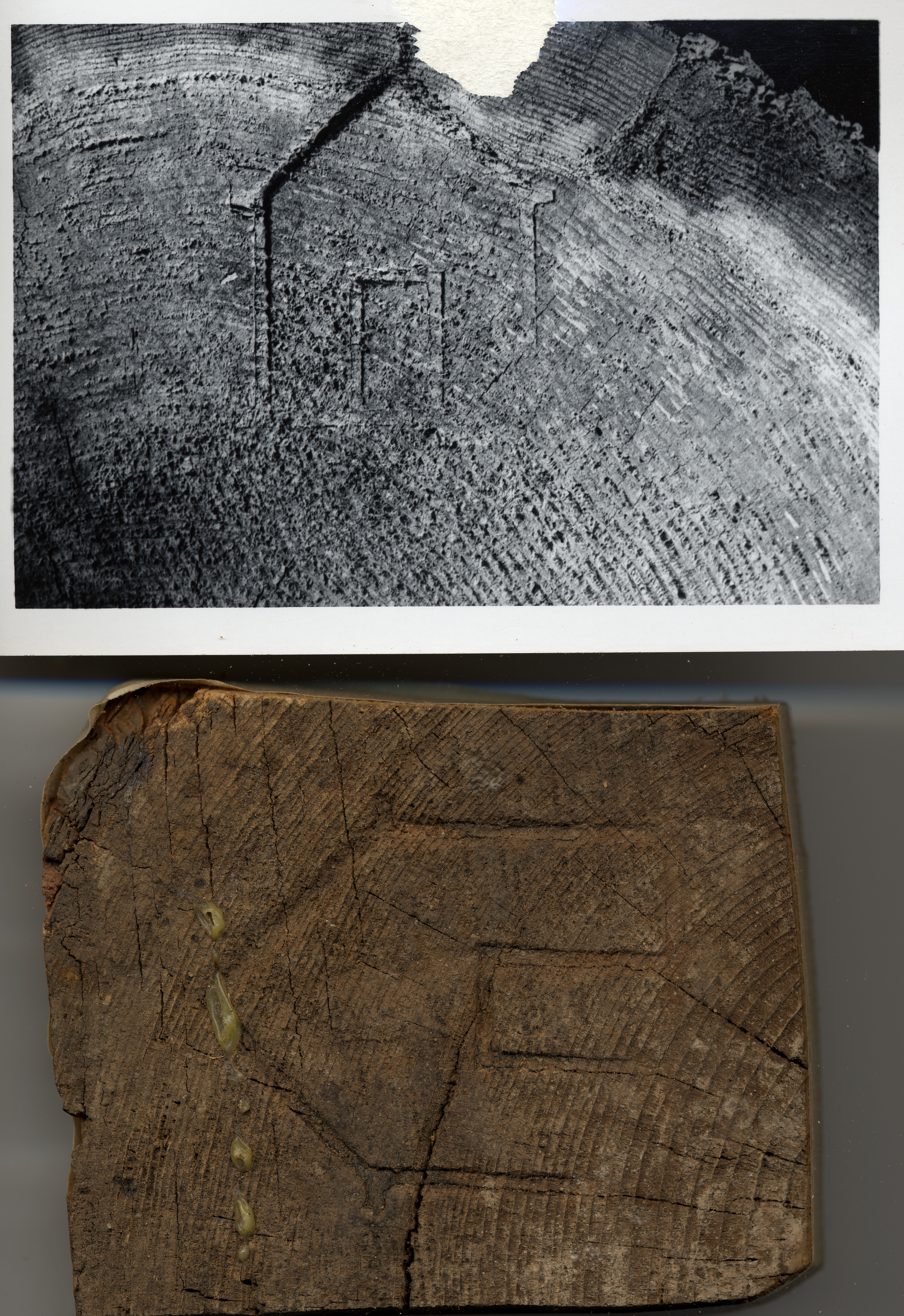 Block of wood with log brand cut from original log end.
