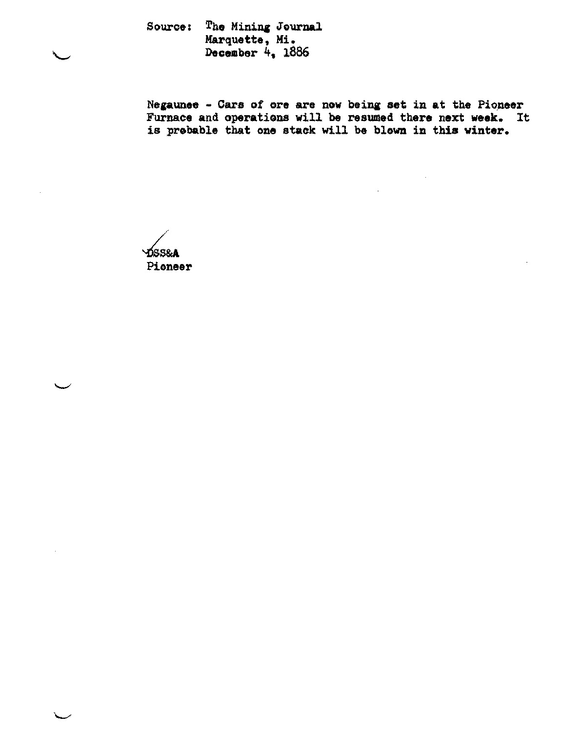 Article about the Pioneer Furnace in Negaunee, Michigan.