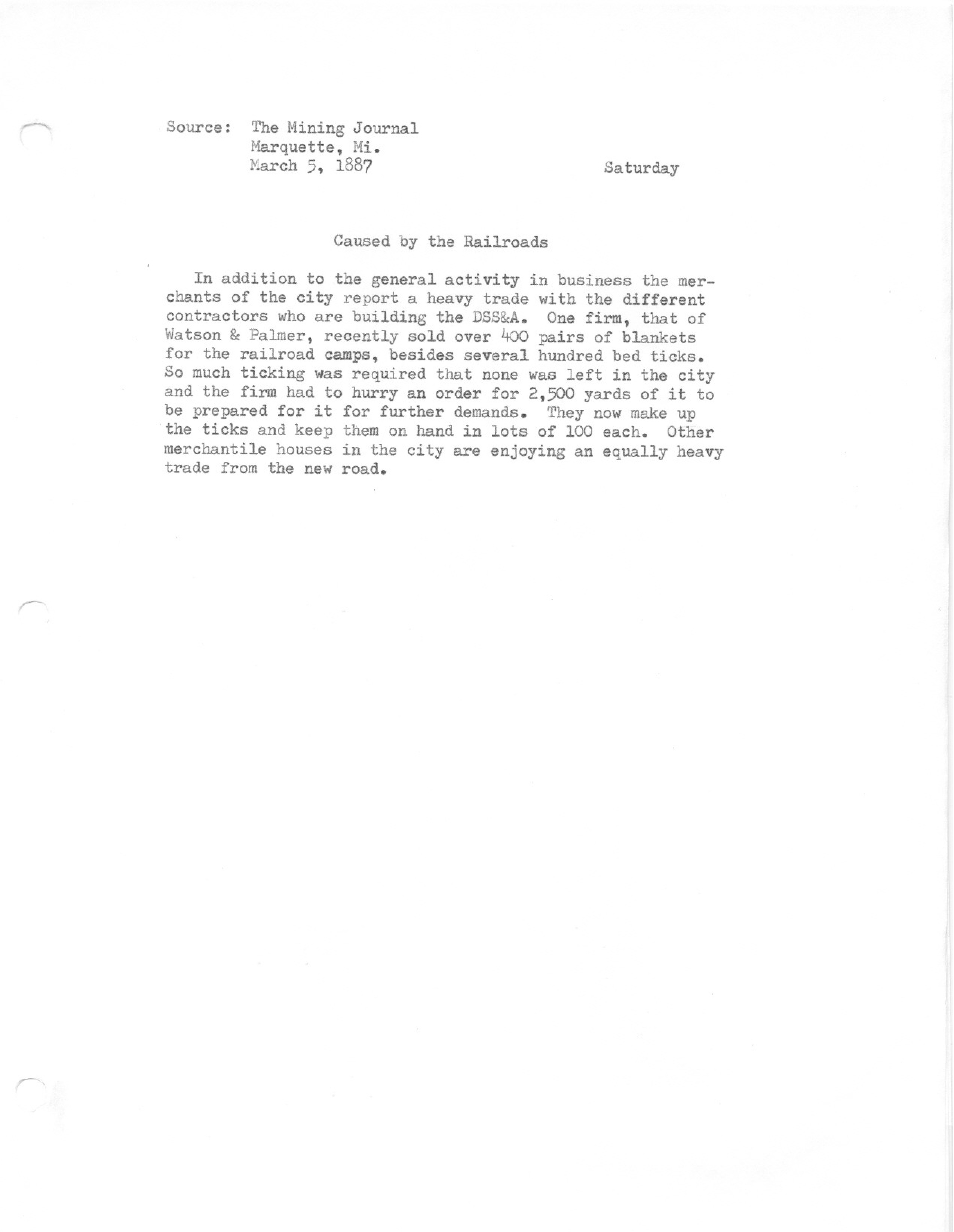 In addition to the general activity in business the merchants of the city report a heavy trade with the different contractors who are building the DSS&A. Merchantile houses in the city are enjoying an equally heavy trade from the new road.