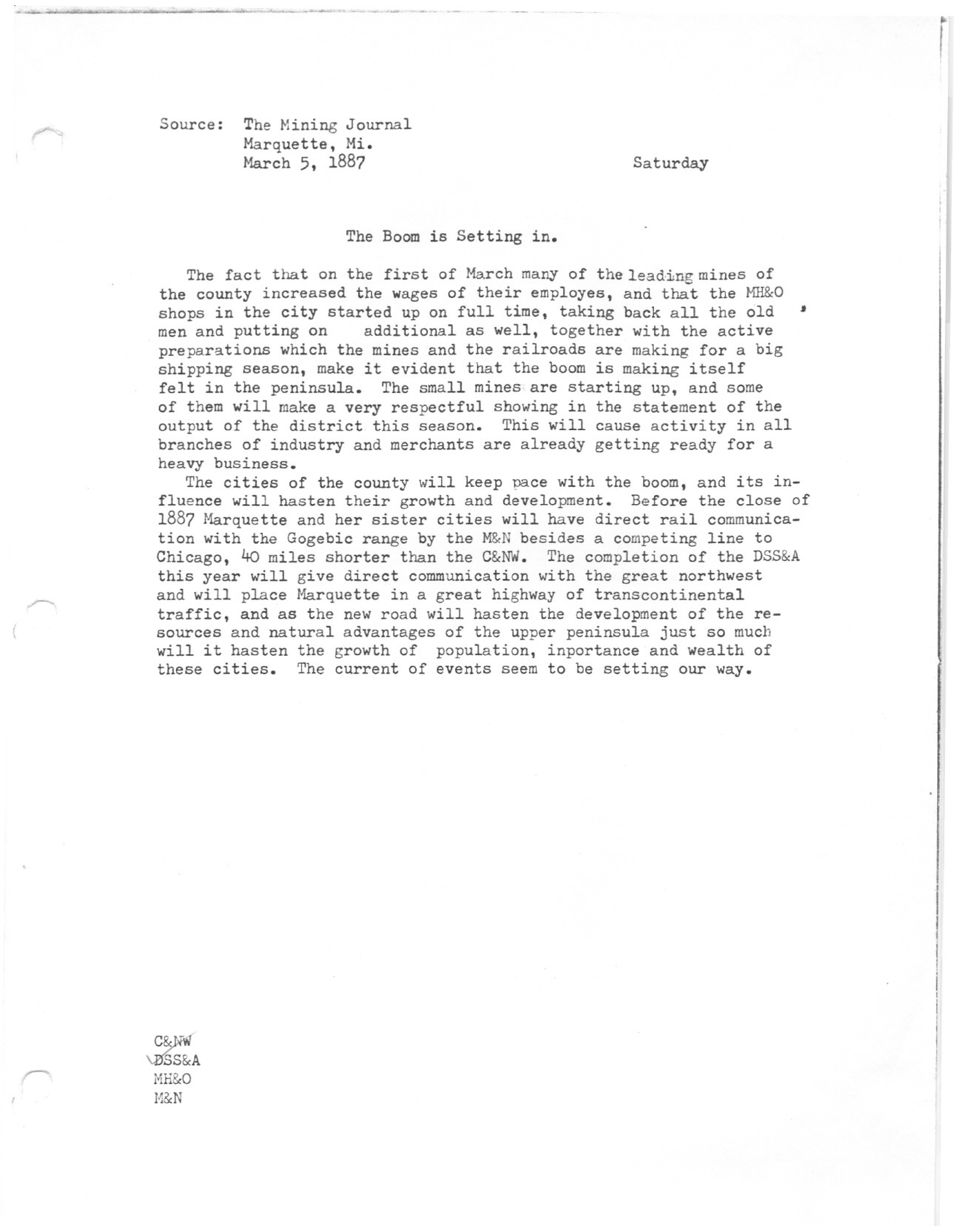 The fact that on the first of March many of the leading mines of the county increased the wages of their employees, and that the MH&O shops in the city started up full time, taking back all the old men and putting on additional as well.