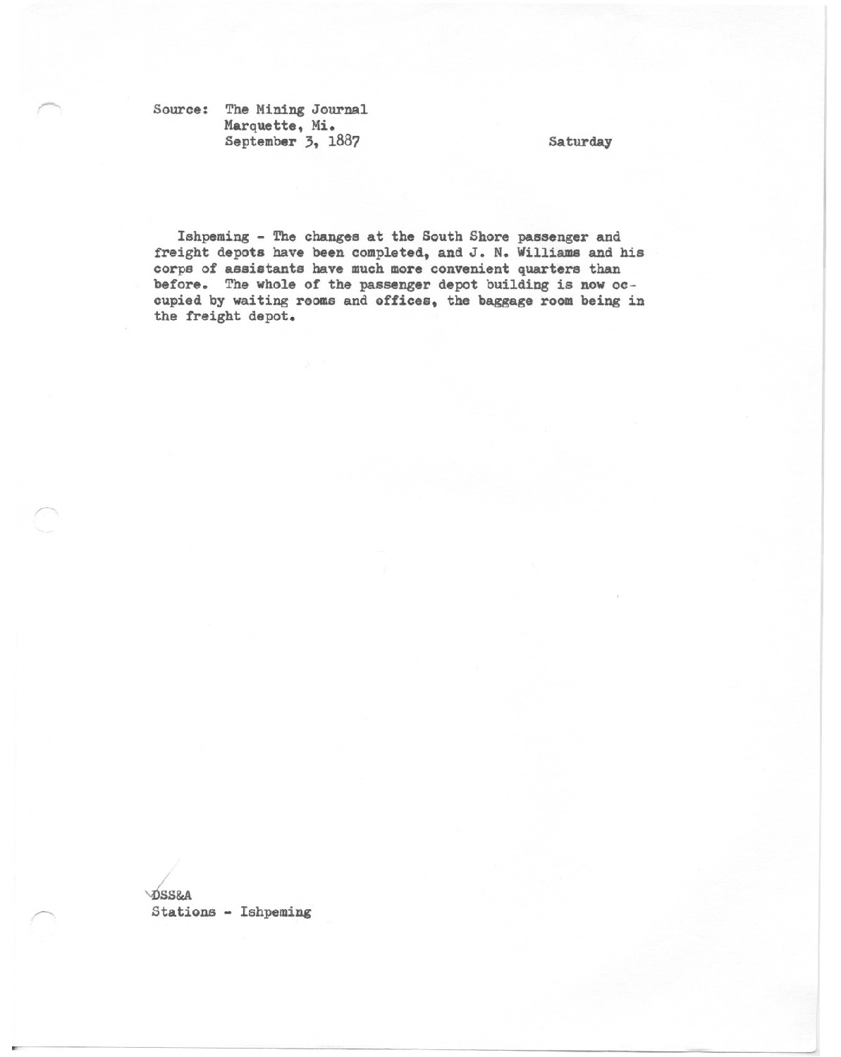 The changes at the South Shore passenger and freight depots have been completed, and J. N. Williams and his corps of assistants have much more convient quarters than before. The whole of the passenger depot building is now occupied by waiting rooms and offices, the baggage room being in the freight depot.