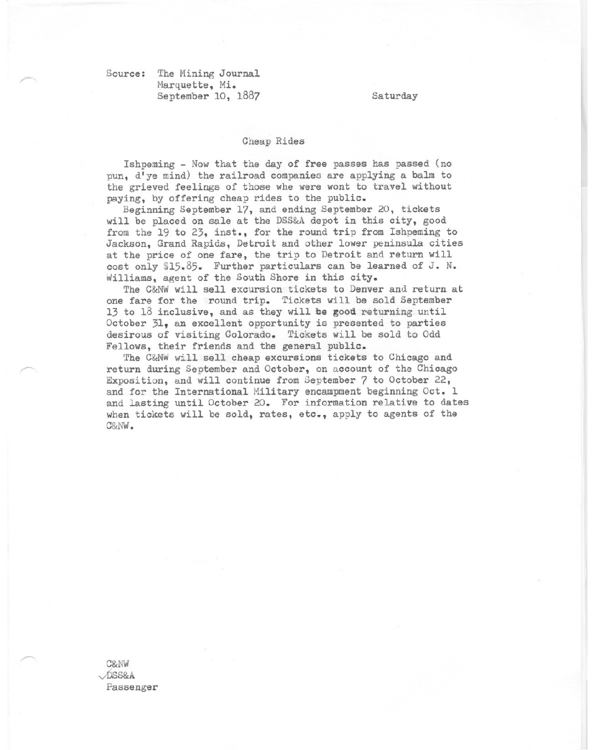 Now that the day of free passes has passed (no pun, d'ye mind) the railroad companies are applying a balm to the grieved feelings of those who were wont to travel without paying, bye offering cheap rides to the public.