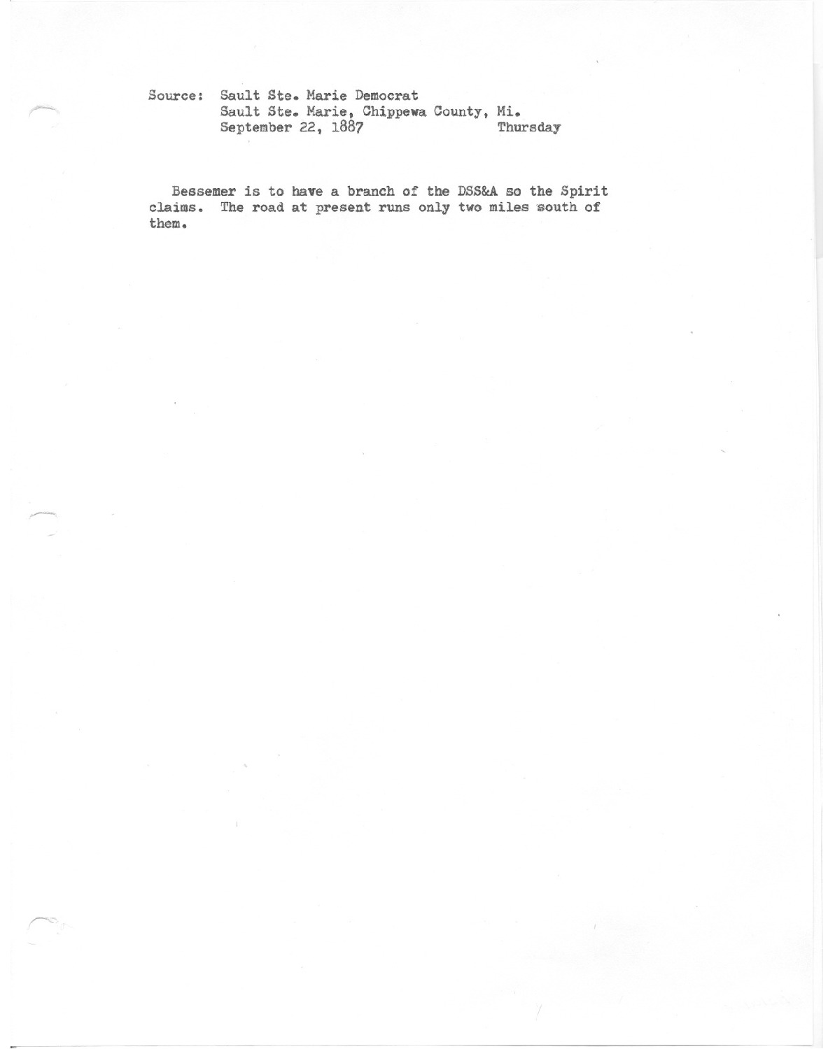Bessemer is to have a branch of the DSS&A so the Spirit claims. The road at present runs only two mile south of them.