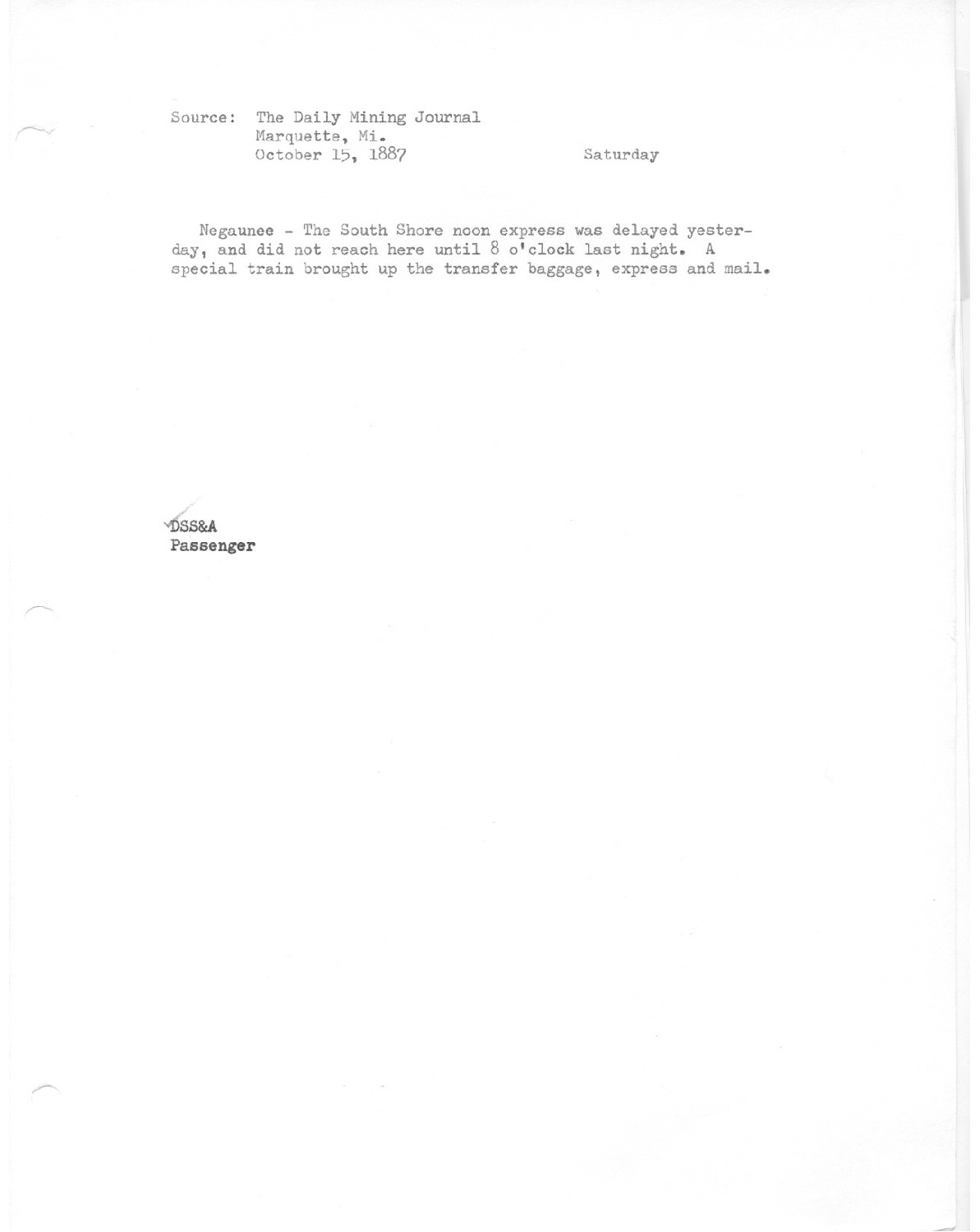 The South Shore noon express wad delayed yesterday, and did not reach here until 8 o'clock last night. A special train brought up the transfer baggage, express and mail.