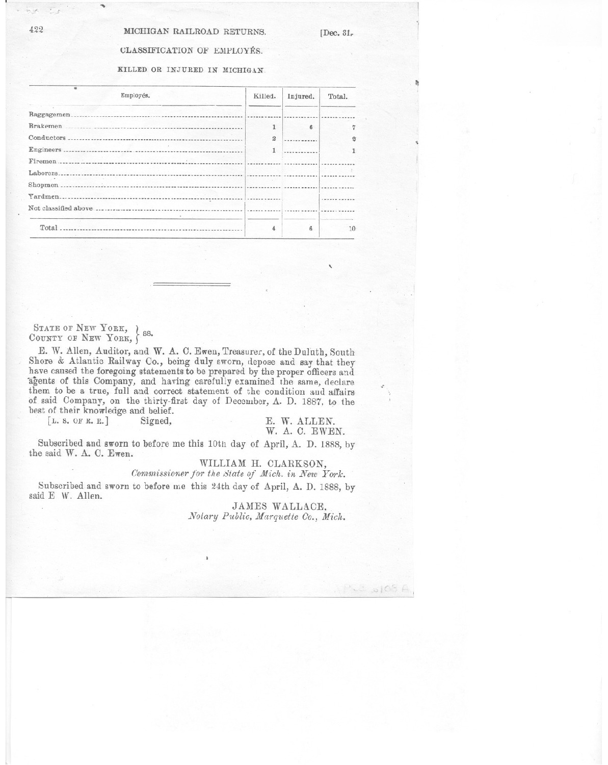 Duluth, South Shore & Atlantic Railway Company annual report for the year ending December 31, 1887.