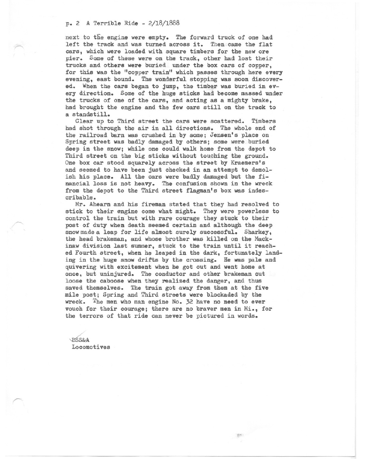 At 7:30 Thursday evening that thrilling locomotive shriek was heard which instantly told people in Marquette that there was a runaway train coming down the grade from Burnce man nad whose blood-curlding intonations brought men to their feet.