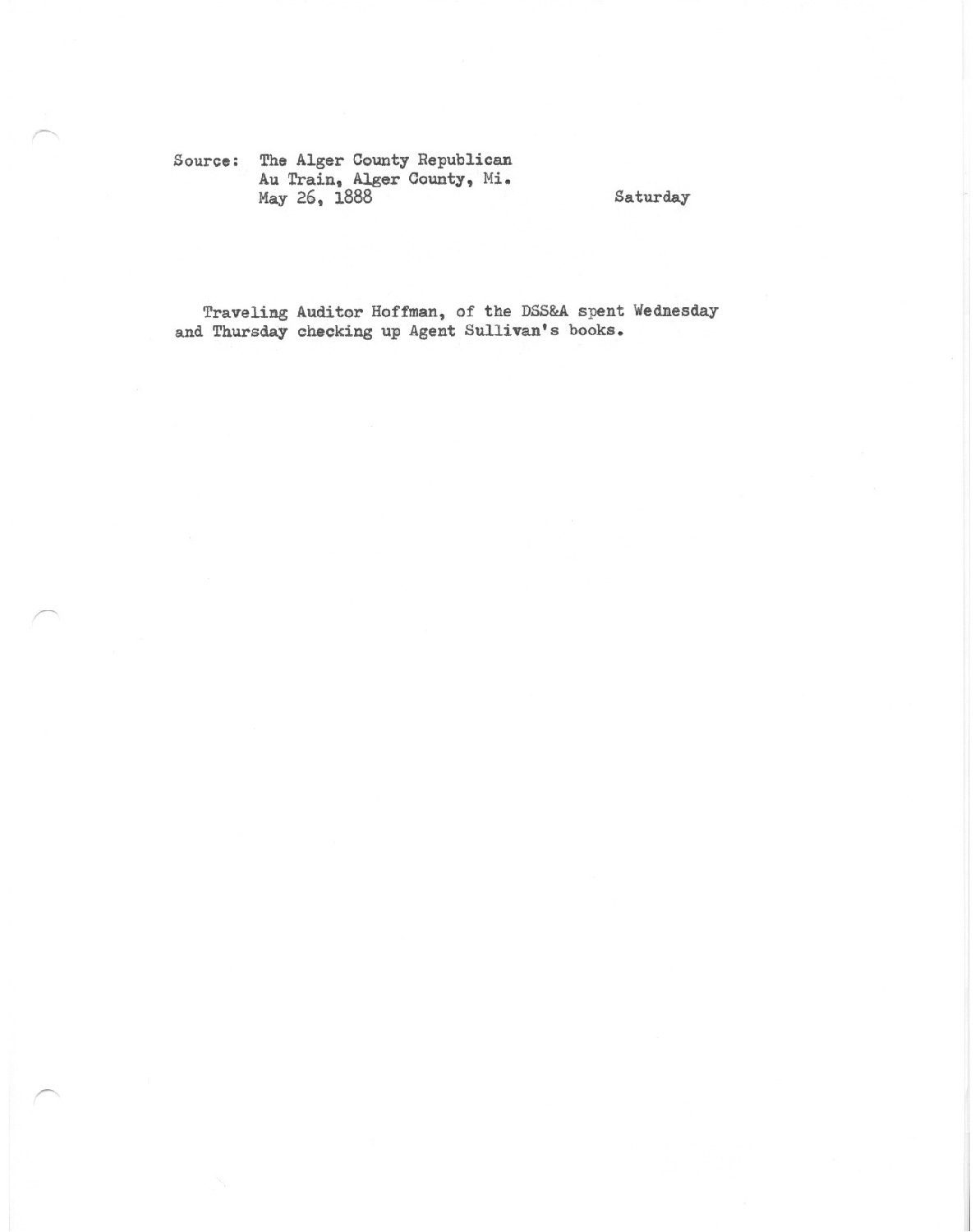 Traveling Audtior Hoffman, of the DSS&A spent Wednesday and Thursday checking up Agent Sullivans books.