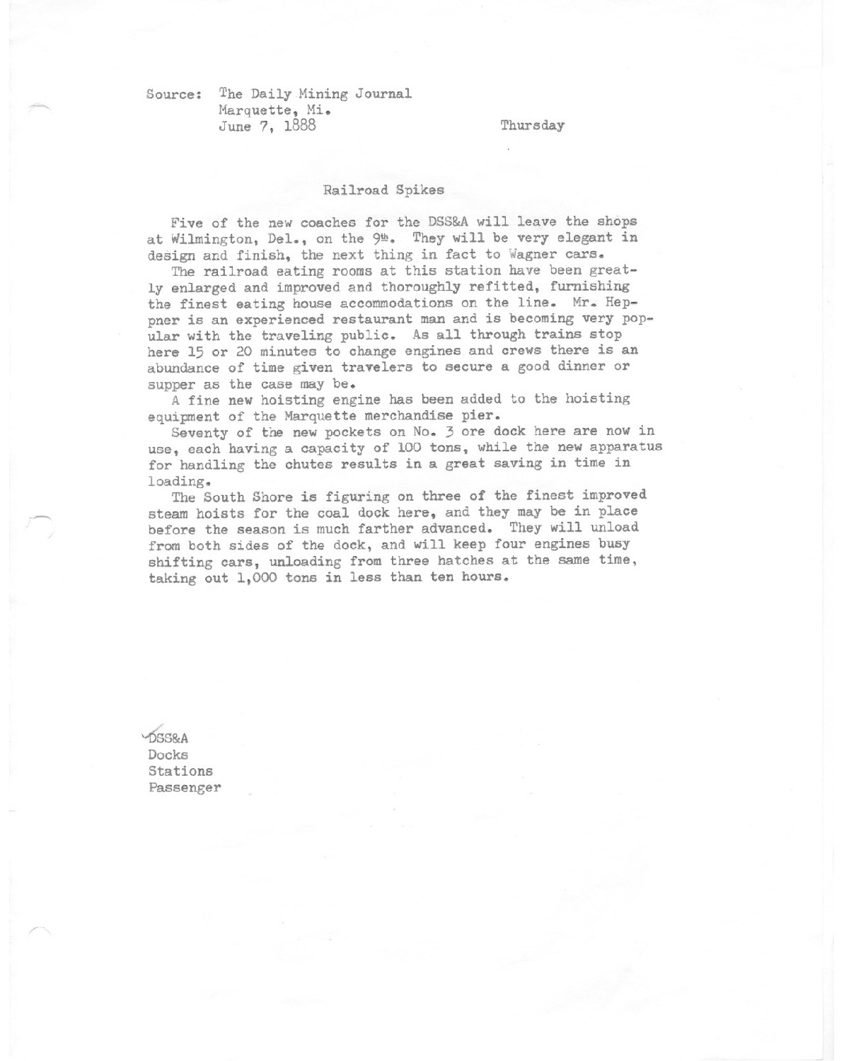Five of the new coaches for the DSs&A will leave the shops at Wilmington, Del., on the 9th. They will be very elegant in design and finish, the next thing in fact to Wagner cars.