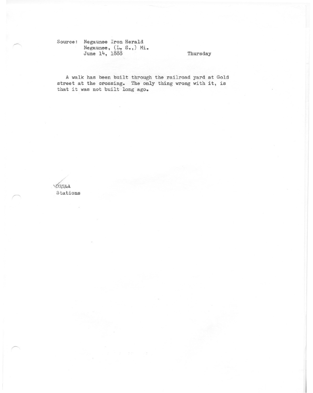 Walk has been built through the railroad yard at Gold street at the crossing. The only thing wrong with it, is that it was not built long ago.