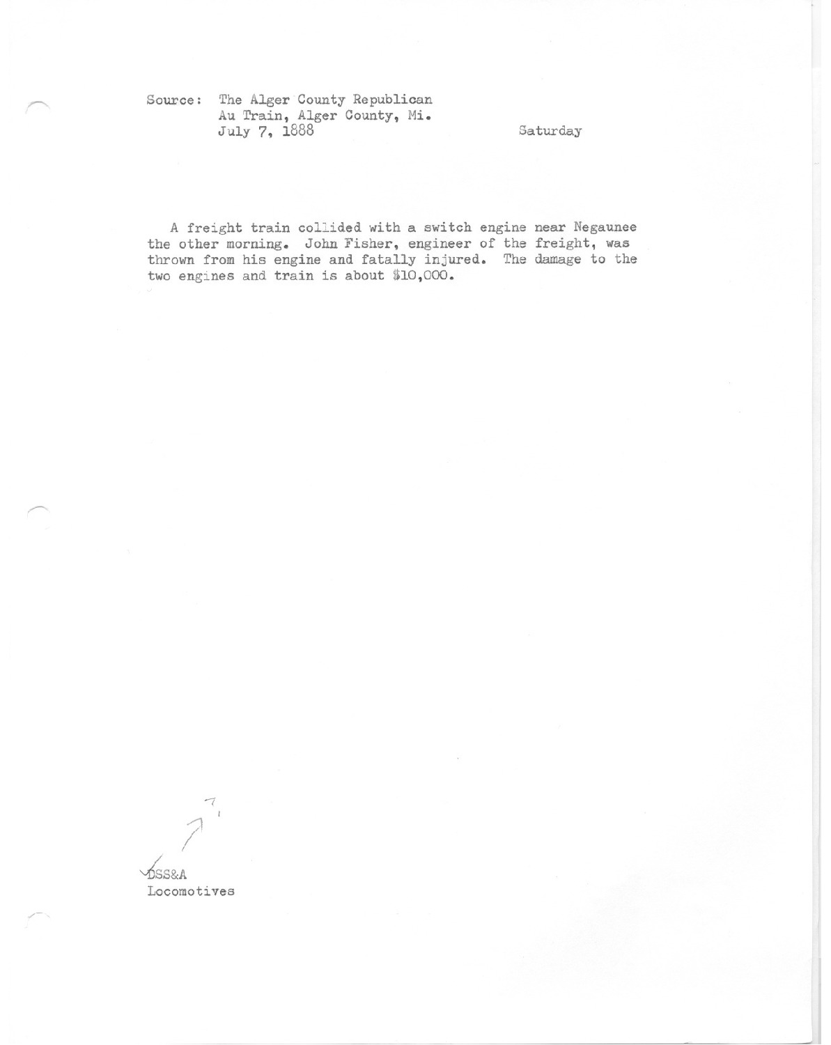 Regarding the report sent out from Champion to several outside dailies, to the effect that the DSS&A the Soo and the M&N have in contemplation the construction of an indepdent ore carrying line from Champion to Gladstone, and the erection at the latter point of immense ore docks.