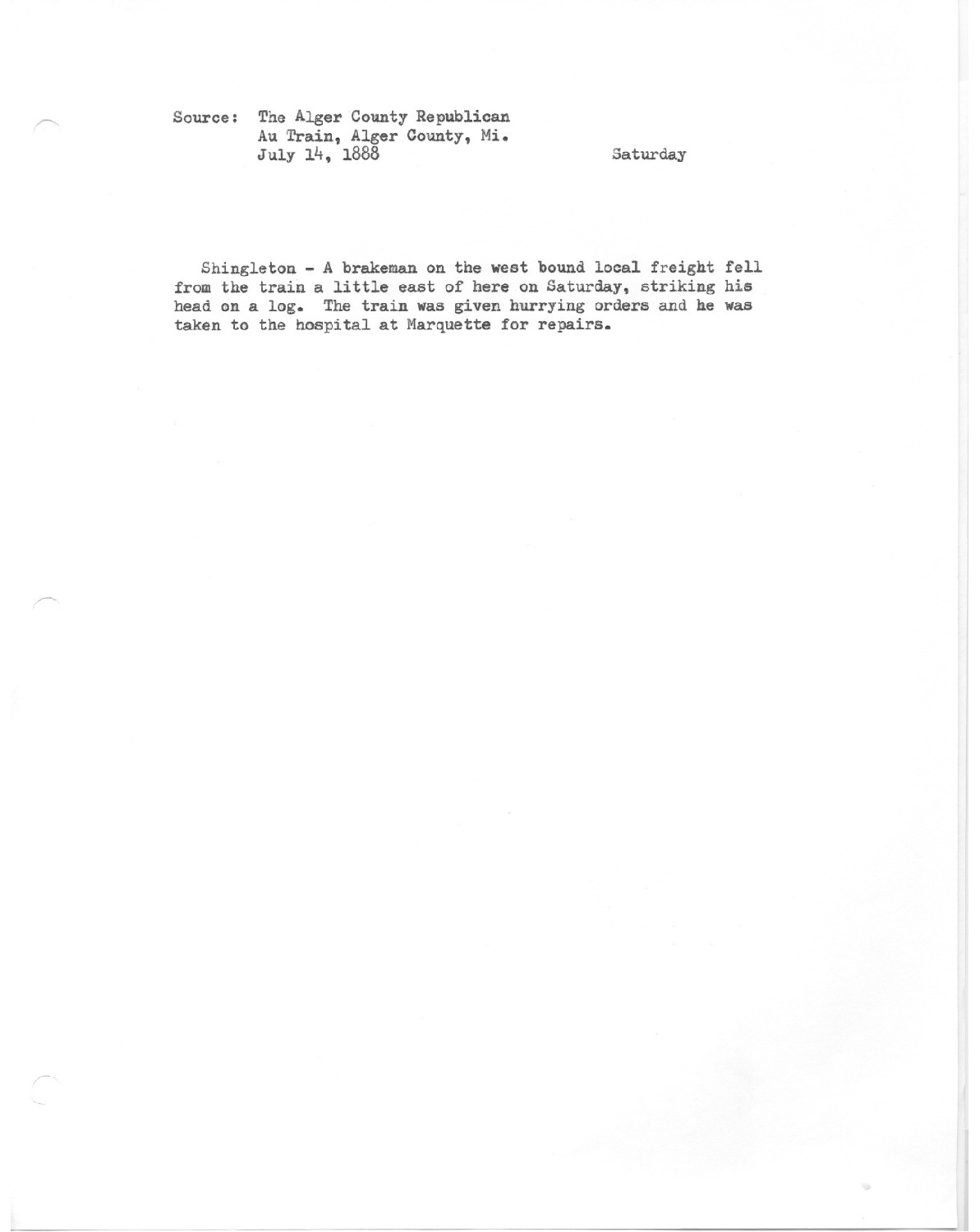 W. S. Lerch is the name of the new condutor who runs on the South Shore to this place.