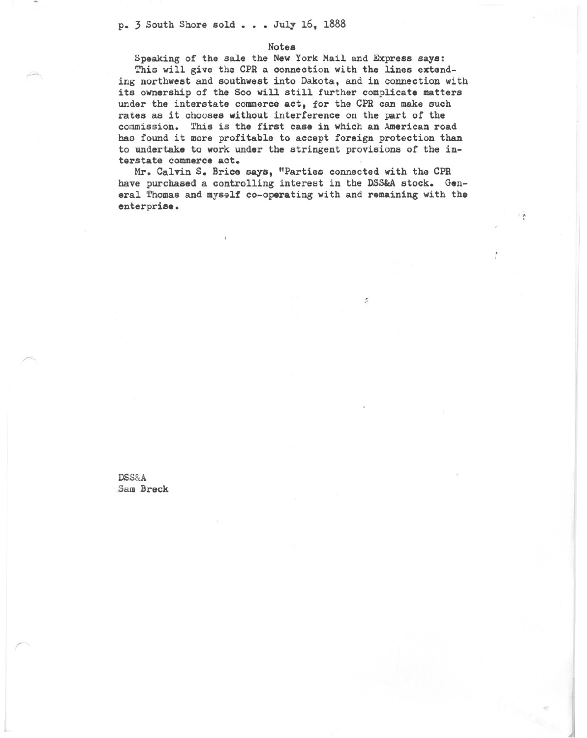 Lake press dispatches confirm the rumored sale of a controlling interest in the DSS&A to the CPR, or rather to the capitalists most intrested in the latter road. All the light that can be thrown on the situation is given in the following newspaper comments.