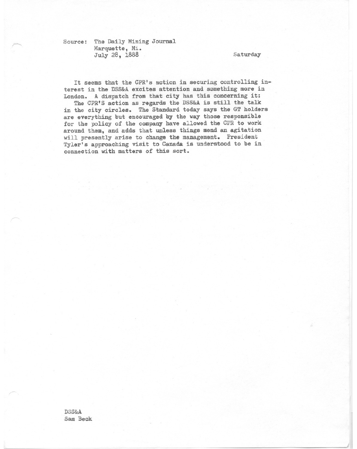 It seems that the CPR's action in securing controlling interest in securing controlling interest in the DSS&A excites attention and something more in London.