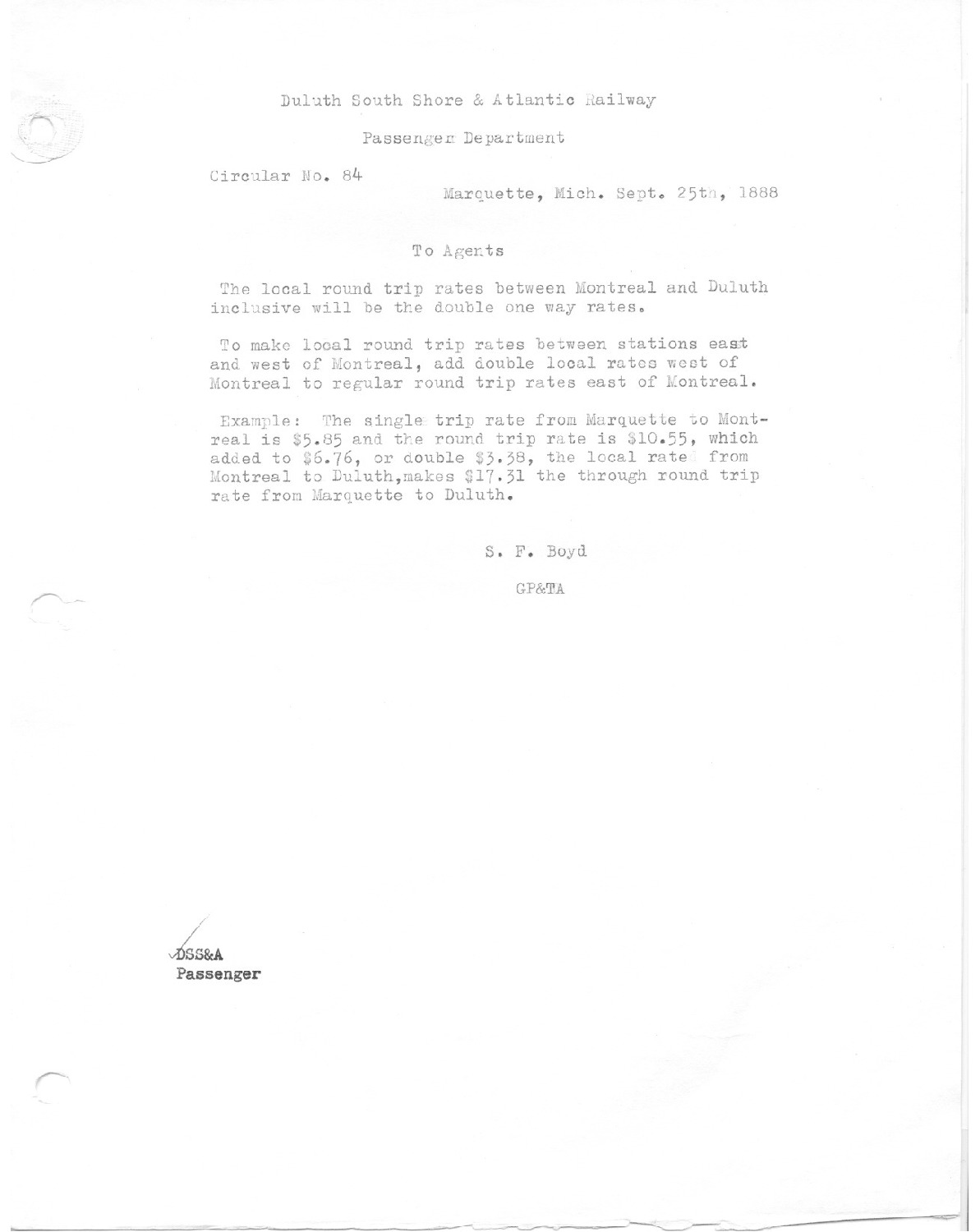 The local round trip rates between Montreal and Duluth inclusive will be the double one way rates.