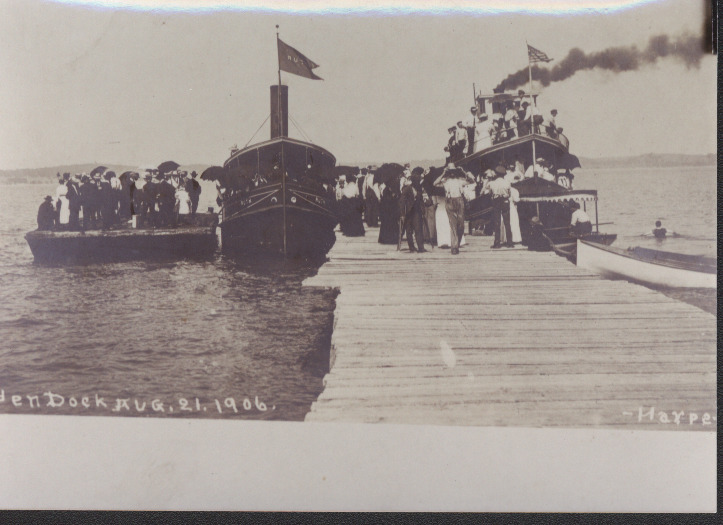 Color photo of Alden Dock, August 21, Alden, Michigan ca.1906.
