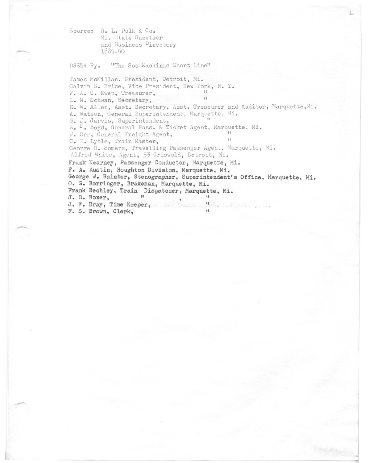 DSS&A Soo Mackinac Short Line - Employee Directory