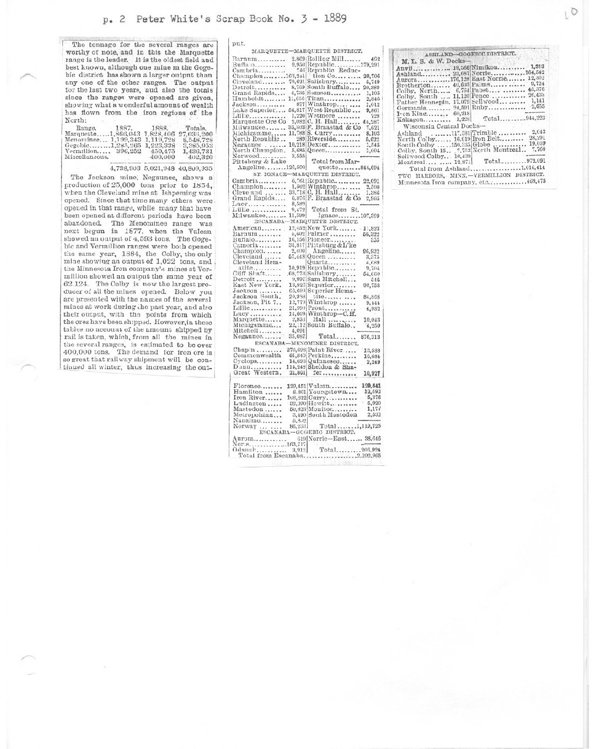 Marquette Iron Mines. The Inexhaustible Marquette Range Shows a Larger Output Than Any Other Iron Field. Millions of tons already taken out, and still there is an abundance remaining. The Duluth South Shore & Atlantic Railway and what it has done for Marquette. Many first class educational institutes a model house of correction, ore statistics.