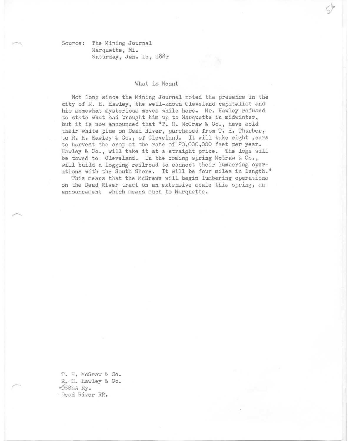 Not long since the Mining Journal noted the presence in the city of R. K. Hawley, the well-known Cleveland capitalist, and his some what mysterious moves while here.