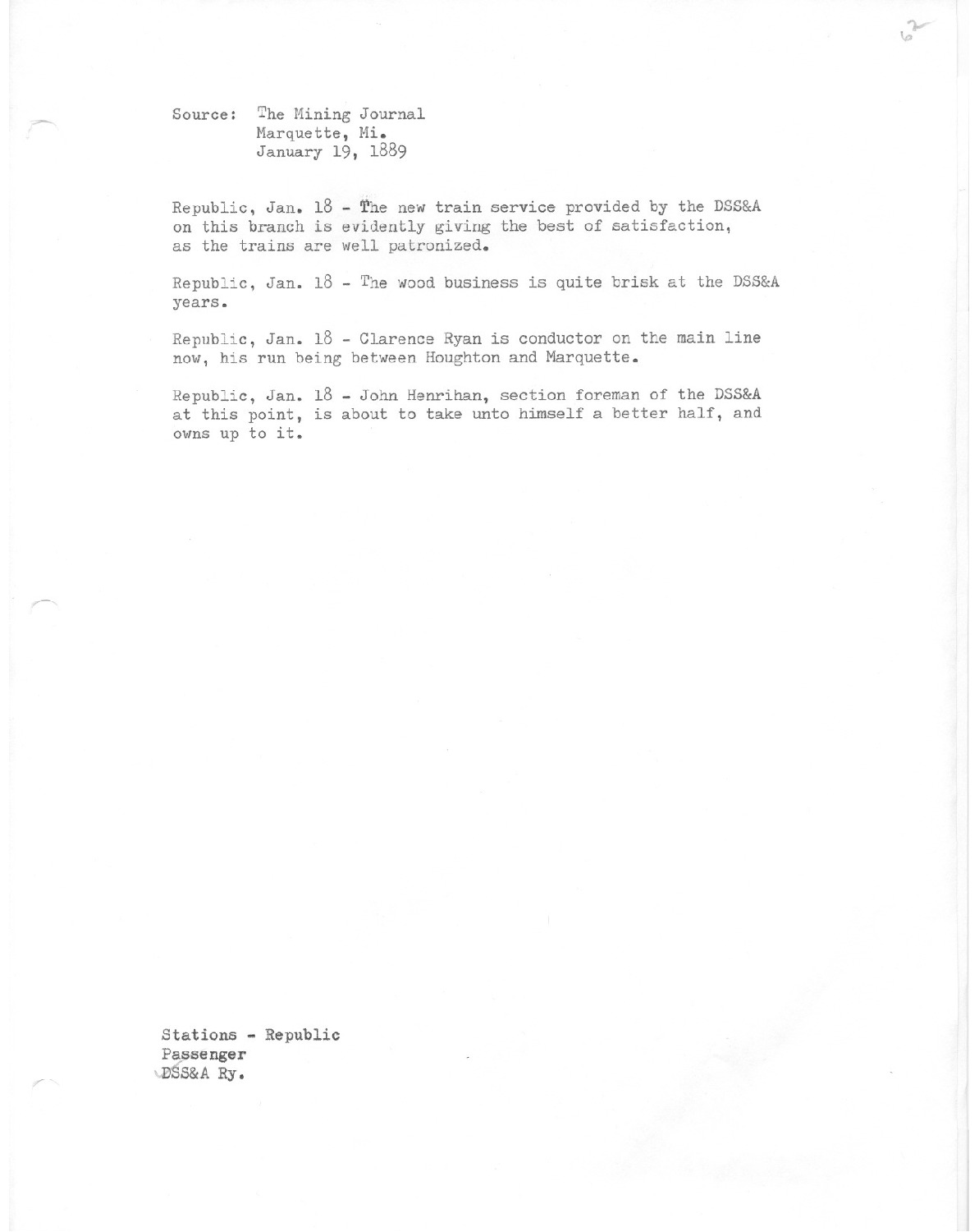 The new train service provided by the DSS&A on this branch is evidently giving the best of satisifaction, as the trains are well patronized.