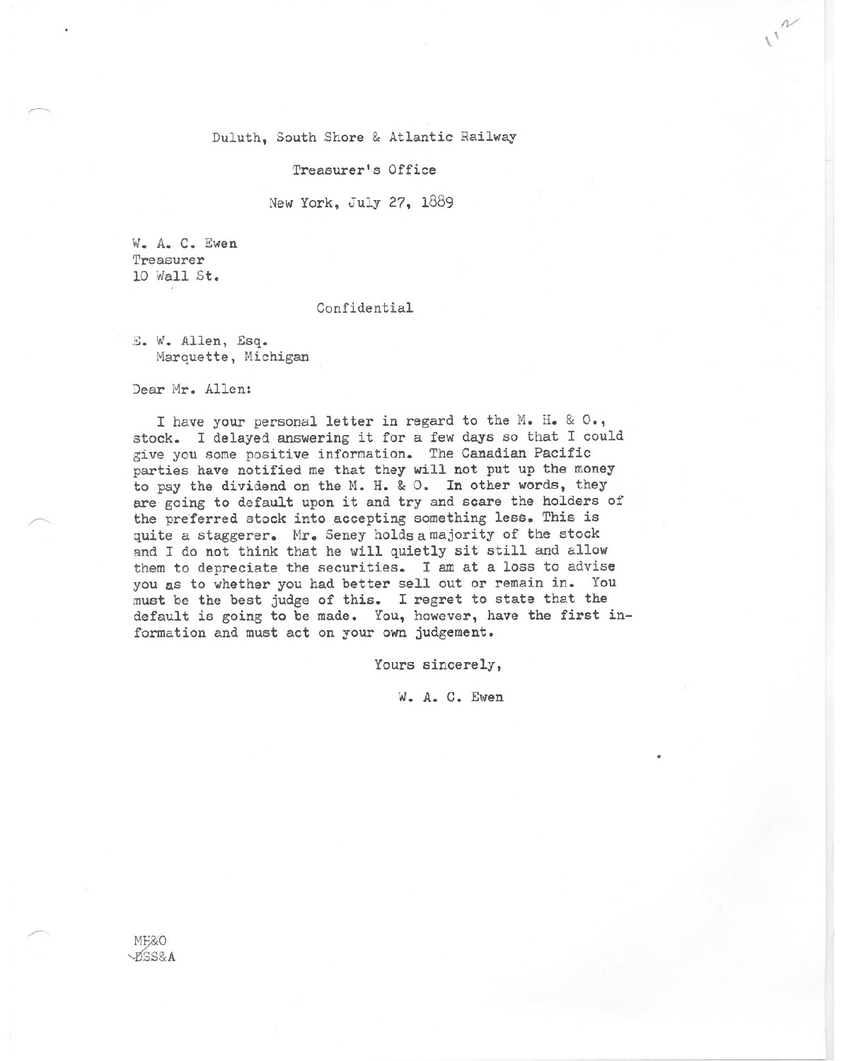 Letter to W. Allen from W. A. C. Ewen