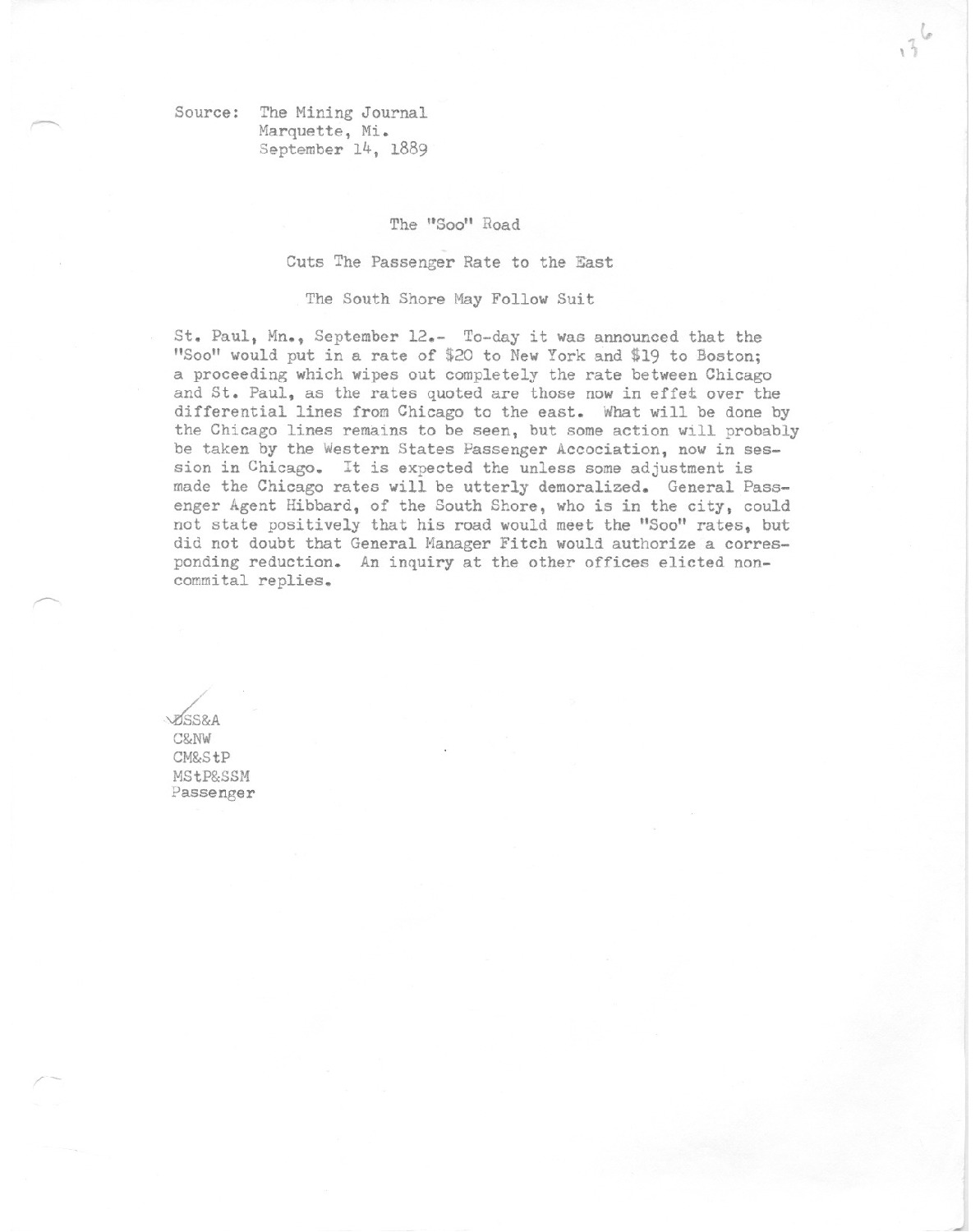 Today it was announced that the Soo would put in a rate of $20.00 to New York and $19.00 to Boston.