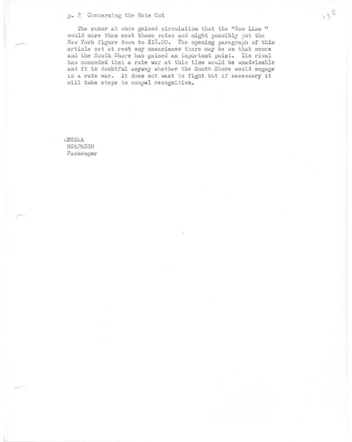In the telegraphic column of this paper, as taken from the Associated Press reports, was a statement that the Soo Line, the MSSM&A had put rates down from St. Paul to Minneapolis to New York to $20.00 and to Boston $19.00.