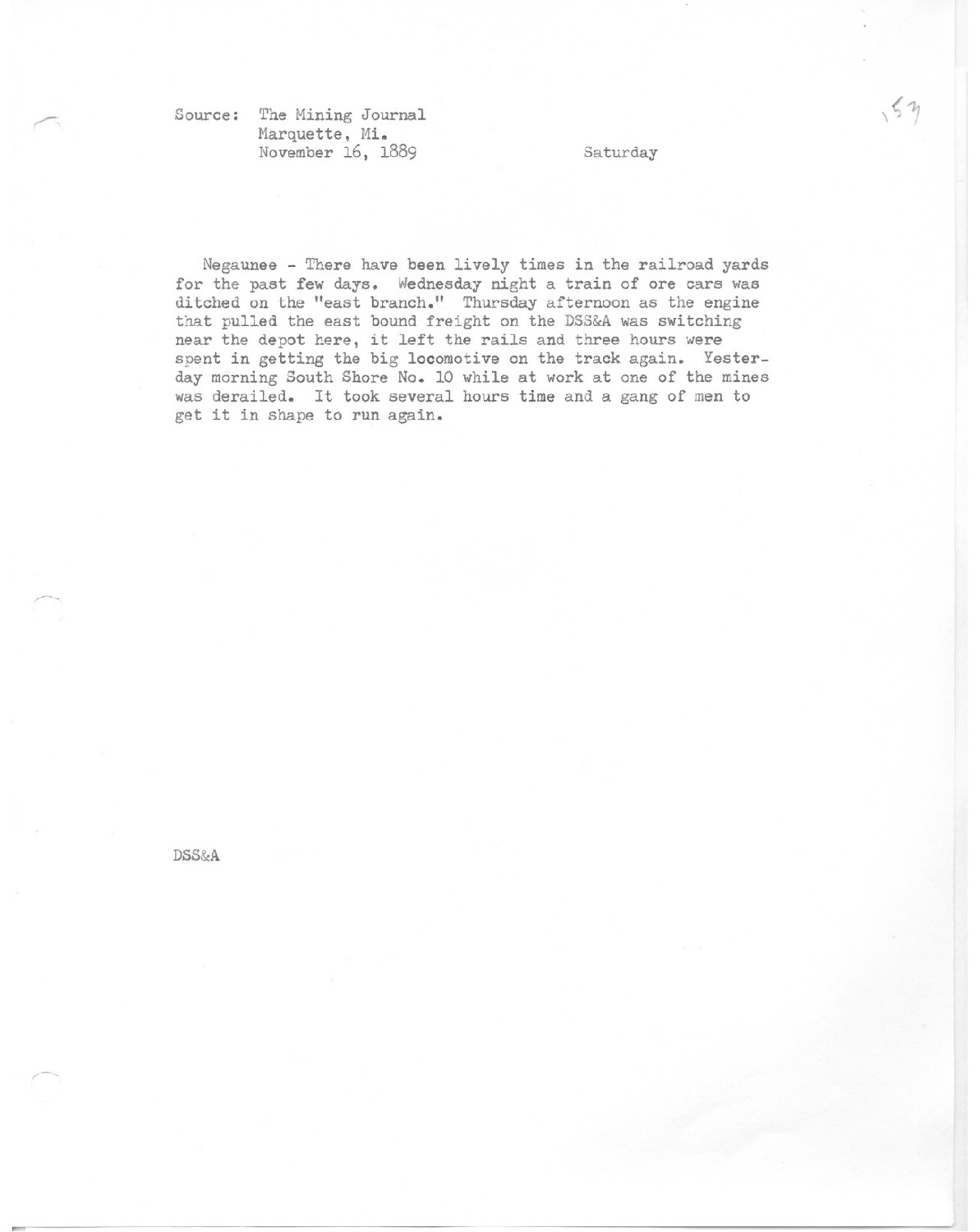 There have been lively times in the railroad yards for the past few days. Wednesday night a train of ore cars was ditched on the east branch.