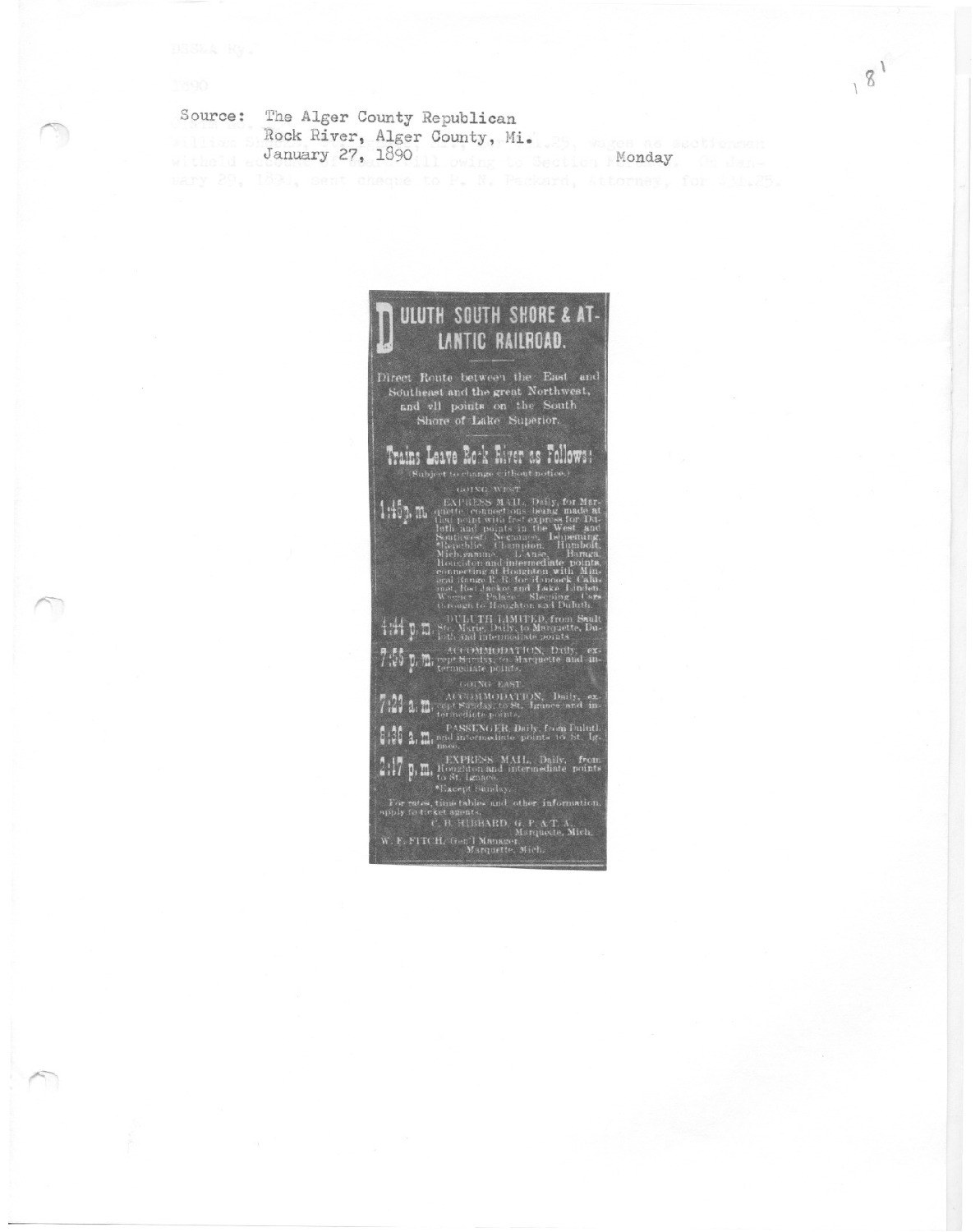 Duluth South Shore & Atlantic Railroad. Direct route between east and southeast and the great northwest and all points on the south shore of Lake Superior.