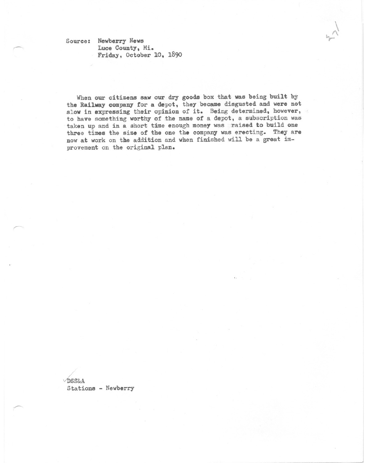 When our citizens saw our dry goods box that was being built by the Railway company for a depot, they become disgusted and were not slow in expressing their opinion of it. Being determined, however to have something worthy of the name of a depot, a subscription was taken up and in a short time enough money was raised to buld one three times the size of the one the company was erecting.