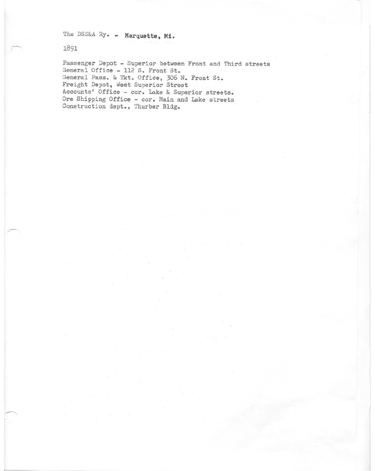 DSS&A Railroad Marquette Michigan department directory for 1891.