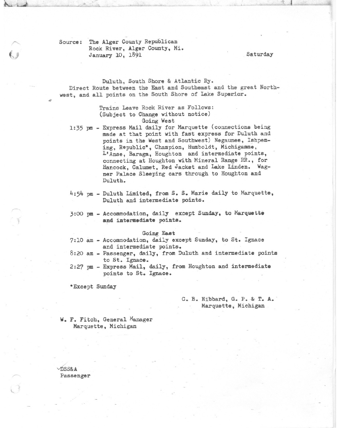 Duluth South Shore & Atlantic Railroad: Direct route between the East and Southeast and the great Northwest, and all points on the South Shore of Lake Superior.
