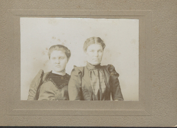 Black and white photo of Maude Young Clyde and Mamie Young Coy, Alden, Michigan ca.1905.